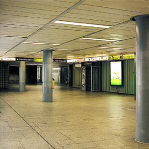 Die ganze Reihe verzichtet darauf, ihren Betrachter anzuspringen, fast sogar ihn anzusprechen: Das betrifft auch jene Bilder, die heute nicht im Café Grün zu sehen sind, und sogar jene, die noch lange nicht aufgenommen, ja nicht einmal geplant und deren Motive noch nicht entdeckt sind. Es gäbe durchaus Möglichkeiten – zumindest die Leser von Floristen-Fachmagazinen wissen das – Löcher in Rhododendron-Hecken fotografisch zu dramatisieren. Und auch die Spannungen zwischen 70er-Jahre Wandschmuck und 90er-Jahre Ameublement im Brill-Tunnel hätten durchaus spektakuläre Inszenierungen erlaubt.