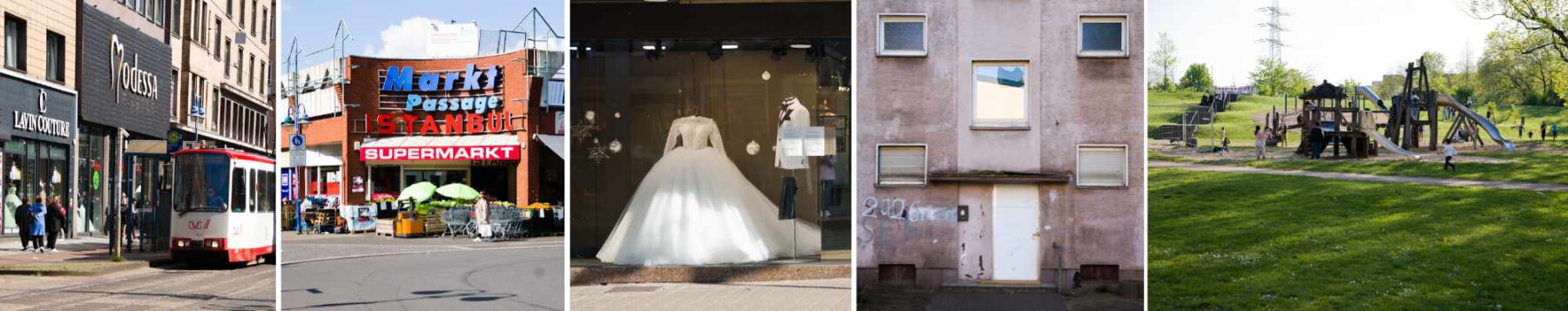 In Hamborn und Marxloh stehen viele Gebäude aus der Bauhaus-Zeit der 1920er Jahre. Eine Architekturepoche, die uns sehr interessiert und die wir auf unseren Reisen durchs Ruhrgebiet immer mal wieder aufspüren werden. Die damals noch eigenständige Stadt Hamborn erlebte durch die Zeche Neumühl einen enormen Aufschwung und wurde 1925 eine Großstadt mit 125.000 Einwohner*innen, die umfassenden Wohnungsbau erforderlich machte. Heute stehen viele Gebäude und Siedlungen unter Denkmalschutz.