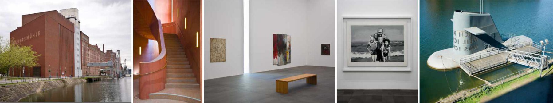 Am Innenhafen liegen umgewidmete Industriebauten. Die Küppersmühle beherbergt hier ein großes Museum zeitgenössischer Kunst. Auf über 6000 qm werden die Sammlungen von Hans Grothe und Sylvia Ströher präsentiert. Die Küppersmühle ist dafür edelst um- und ausgebaut worden. Neu gestaltete Treppenhäuser verbinden die vier Etagen mit großzügigen White Cubes. In der Sammlung befinden sich Werke aller wichtigen deutschen Künstler der zweiten Hälfte des letzten Jahrhunderts. Es sind aber zu so gut wie nur männliche Künstler vertreten und die Sammlung verdeutlicht damit eine bestimmte Haltung. Vor dem Museum liegt die U-Boot Skulptur von Andreas M. Kaufmann und Hans Ulrich Reck im Innenhafen. Auf ihr ist spiegelverkehrt bzw. von innen zu lesen: ICH KANN, WEIL ICH WILL, WAS ICH MUSS.