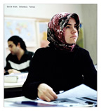 Matthias Haun stellt uns innerhalb eines Auftrags aus dem Goethe-Institut Bremen, ein photographisches Porträt des Instituts zu realisieren, diese jungen Leute exemplarisch vor. In den Prints mit eher graphischem Gestus nutzt er dabei meist klassische Porträtstrategien aus dem Repertoire der bildenden Kunst seit der Renaissance wie Freistellung, Monumentalisierung und Ausschnitt, mit dem Ziel, die jungen Leute aus den diversen Herkunftsländern als Individuen eindringlich dem Betrachter frontal zu präsentieren. Die Wirkung des Einzelporträts wird noch gesteigert durch Symmetrien und Abfolgen als Beziehungsmodi zwischen den großformatigen Einzelbildern, die einfühlsam für jede Person mit einem eigenen bildgestalterischen Konzept aufwarten. Die gleichsam kinematographische Inszenierung dieser Porträts in einer parallelen Diashow hilft uns auf subtile Weise, die Personen aus ihrer archaischen Entrücktheit oder posierenden Beiläufigkeit in der digitalen Zweidimensionalität zu befreien und sie uns, deren Herkunftsländer wir kaum oder gar nicht kennen, lebendig vorzustellen.