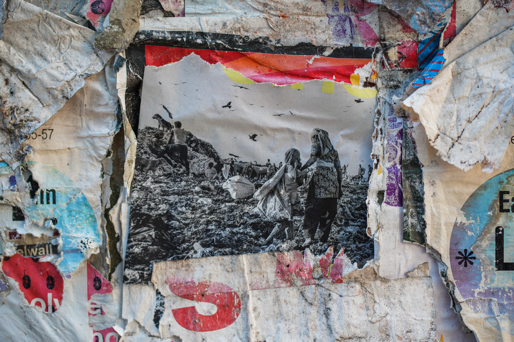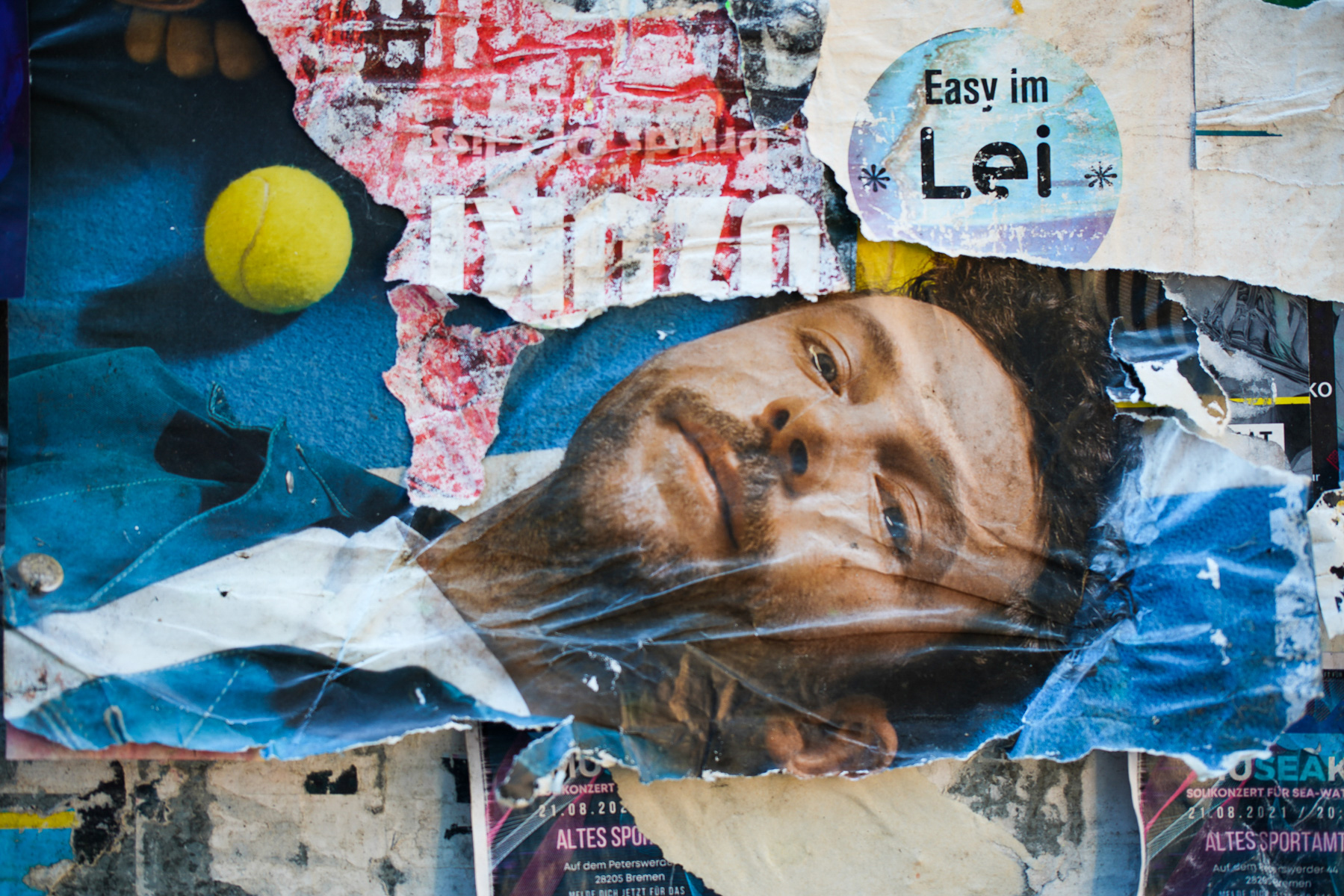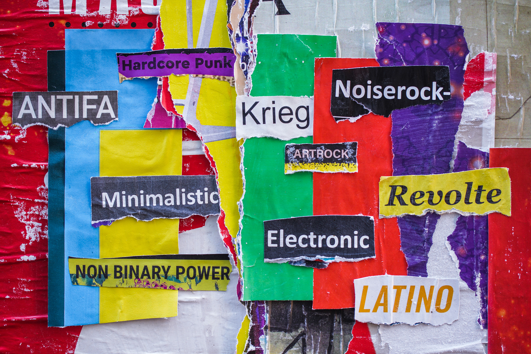 Für meine Serie entschied ich mich für die Erstellung von Collagen aus Plakaten, die ich im öffentlichen Raum entdeckte und den Themen entsprechend vor Ort arrangierte. Es waren keine ganzen Plakate, sondern Ausschnitte, Ausrisse und Fragmente. Die meisten Plakate – soweit es sich nicht um Produktwerbung handelt – werben für Musikveranstaltungen und Theateraufführungen. Sie schienen mir daher gut geeignet, eine Serie zum Oberthema Symphonie und den von der Musik inspirierten Einzelthemen zu erstellen.