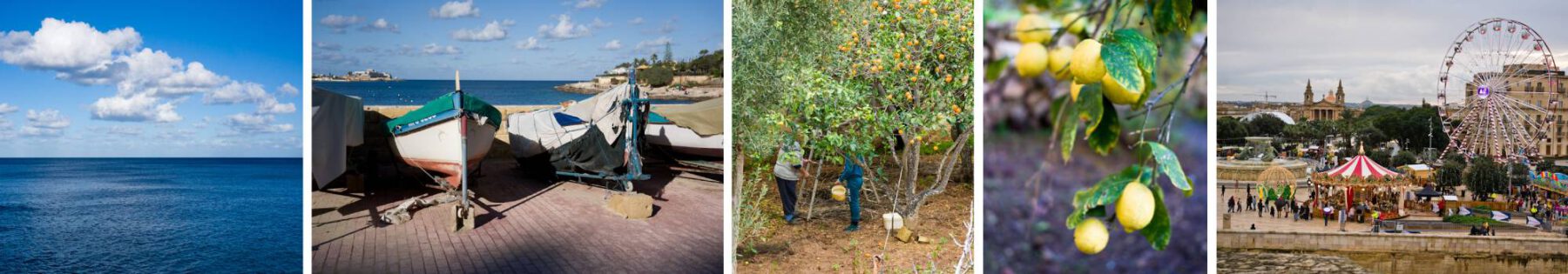 Die Natur spielt eine bedeutende Rolle auf Malta. Natürlich das umhertreibende Meer mit seinen in den Kalkstein gefressenen Höhlen und Lagunen mit Bade- und Tauchmöglichkeiten und den Segel- und Bootsfahrten. Dann gibt es Wege zwischen den Feldern, die zum Wandern geeignet sind – eingebettet in blühenden Rosmarin. Auf der Fahrt nach Gozo passieren wir die Steilküste von Comino, der kleinsten der drei bewohnten Inseln. Auf Gozo angekommen, sehen wir Dörfer, die von grünen und hügeligen Flächen umgeben sind.