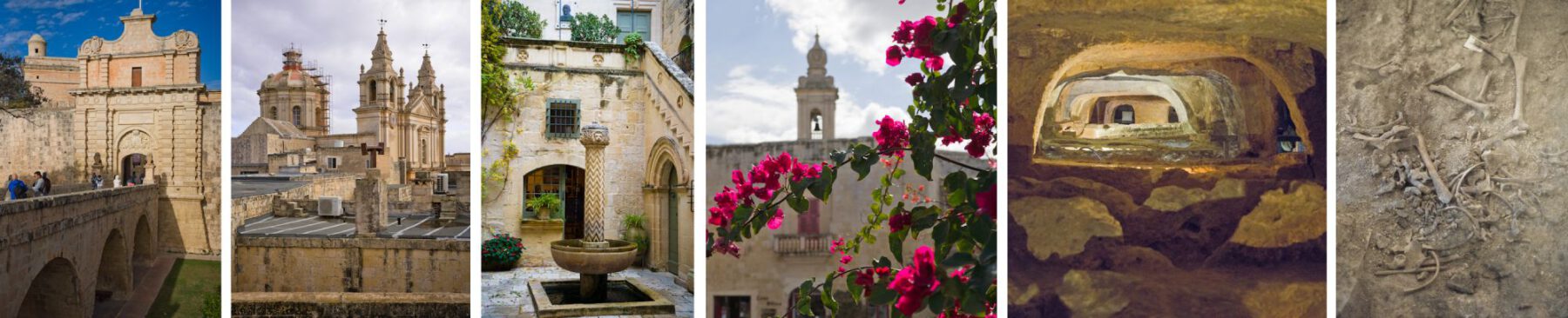 Von der Antike bis ins Mittelalter war Mdina die Hauptstadt Maltas. Heute ist sie weitgehend verlassen und es leben nur noch 250 Menschen hier. Aber es kommen jeden Tag viele Tourist*innen, die in den kleinen Gassen und romantischen Innenhöfen eine fast autofreie Stadt genießen. Mdina dient, wie andere Orte der Insel, häufig als Filmkulisse. Außerhalb der Stadt errichteten die Bewohner*innen vom 3. bis zum 8. Jh. Katakomben, um ihre Toten zu bestatten. Heute kann man die weitläufigen unterirdischen Gänge besichtigen.