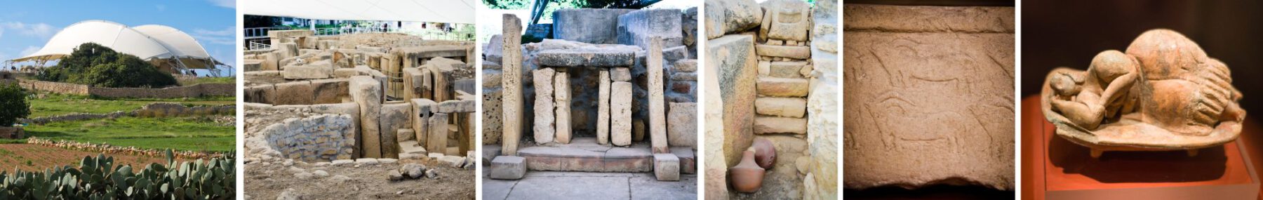 Zwischen 3800 und 2500 v.Chr. schufen die ersten Siedler*innen auf Malta und Gozo große Tempelanlagen aus Kalkstein. Sie sind älter als die Pyramiden und gehören damit zu den ältesten freistehenden Strukturen der Welt. Warum diese Kultur um 2500 v.Chr. endete und was mit den Menschen geschah, ist nicht geklärt. Heute kann man die Ausgrabungen, die mit großen Zeltplanen überspannt sind, besichtigen. Kleinere Funde aus den Tempelanlagen sind im Archäologischen Museum von Valletta zu sehen.