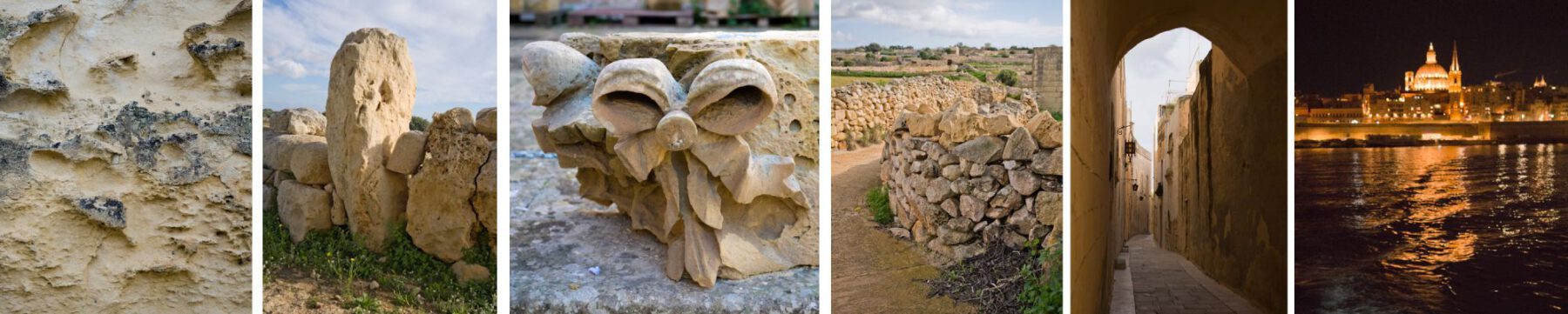 Typisch für Malta ist der gelbliche Kalkstein. Schon vor 7000 Jahren gab es erste Besiedlungen und wir sehen den Kalkstein bereits bei den Ausgrabungsstätten der Megalith-Tempel. Auch die Kirchenbauten sind aus dem gelblichen Stein, wie die Steine, die die Mauern um die Felder bilden. Die Wohnhäuser und Gassen schimmern goldgelb und am Abend leuchten die Stadtsilhouetten honiggelb.