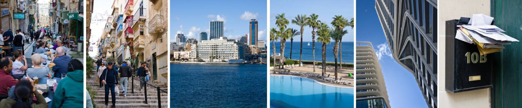Die heutige Hauptstadt Valletta bildet mit ihren Nachbarorten das Zentrum von Malta, in dem etwa die Hälfte der Einwohner*innen lebt. Getrennt sind die Orte durch Buchten, in denen Jachten ankern. Jeder Ort ist durch mächtige Befestigungsmauern umgeben, um die einst vom Meer kommenden Eroberer abzuhalten. Typisch für die Bebauung Maltas sind die engen Straßen und Gassen mit Reihenhäusern und deren hölzernen Erkern. Dabei fällt immer wieder Leerstand auf und Häuser, die verfallen. Die Treppen verdeutlichen, wie hügelig die Orte sind.